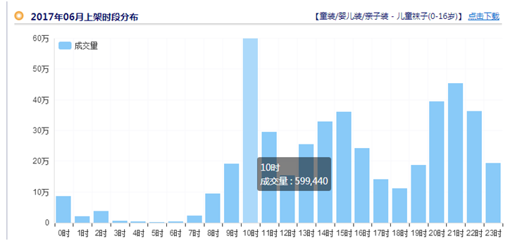 店铺产品上新比较规律且动销较好的店铺机会会更大。这里有2个概念。第一个是固定在什么时间呢,每次上新几个;第二个是动销是什么。首先固定的时间每个商家都不一样,需要结合下行业成交量的高峰。一周中哪一天最高。就在这一天。那么至于每次上几个就要根据自己的能力和产品的更新速度 以及第二个概念的动销。只上全部都是0销量放在那里,这样是没有用的。这也是为什么不让大家去每天上新而是固定一周上一次的原因。通常我建议当前访客不是很多的店铺,一周固定上一次,每次上1-5个都可以的。举个栗子大家来看一下。假设你是 儿童袜子类目: