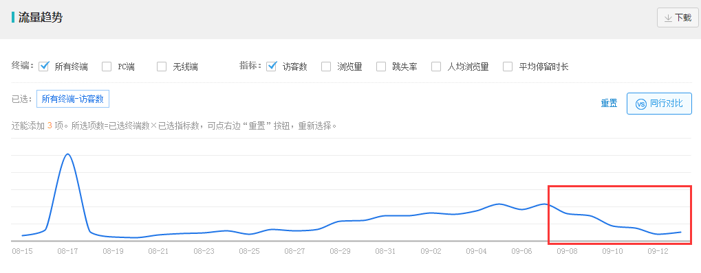 首先看整个店铺整体的流量概况,看是哪一天的流量出现下滑: