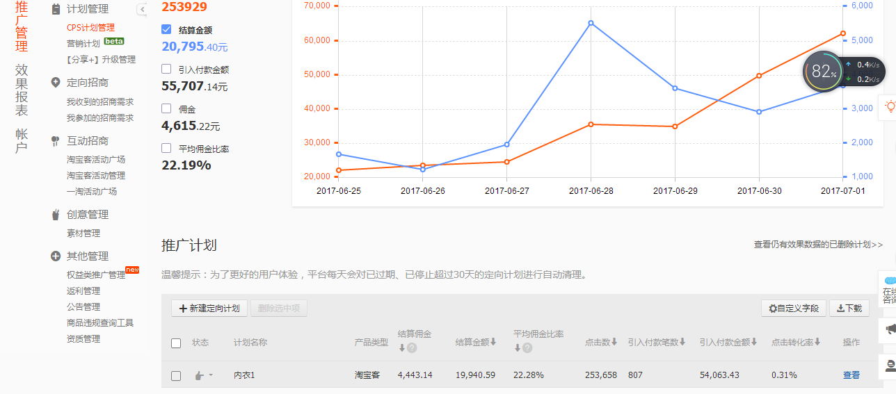 上周报名10个淘客,基本上就这2家有效果,其他无点击也无效果,这2家可以作为长期推广合作之一: 方式为高佣金鹊桥计划。