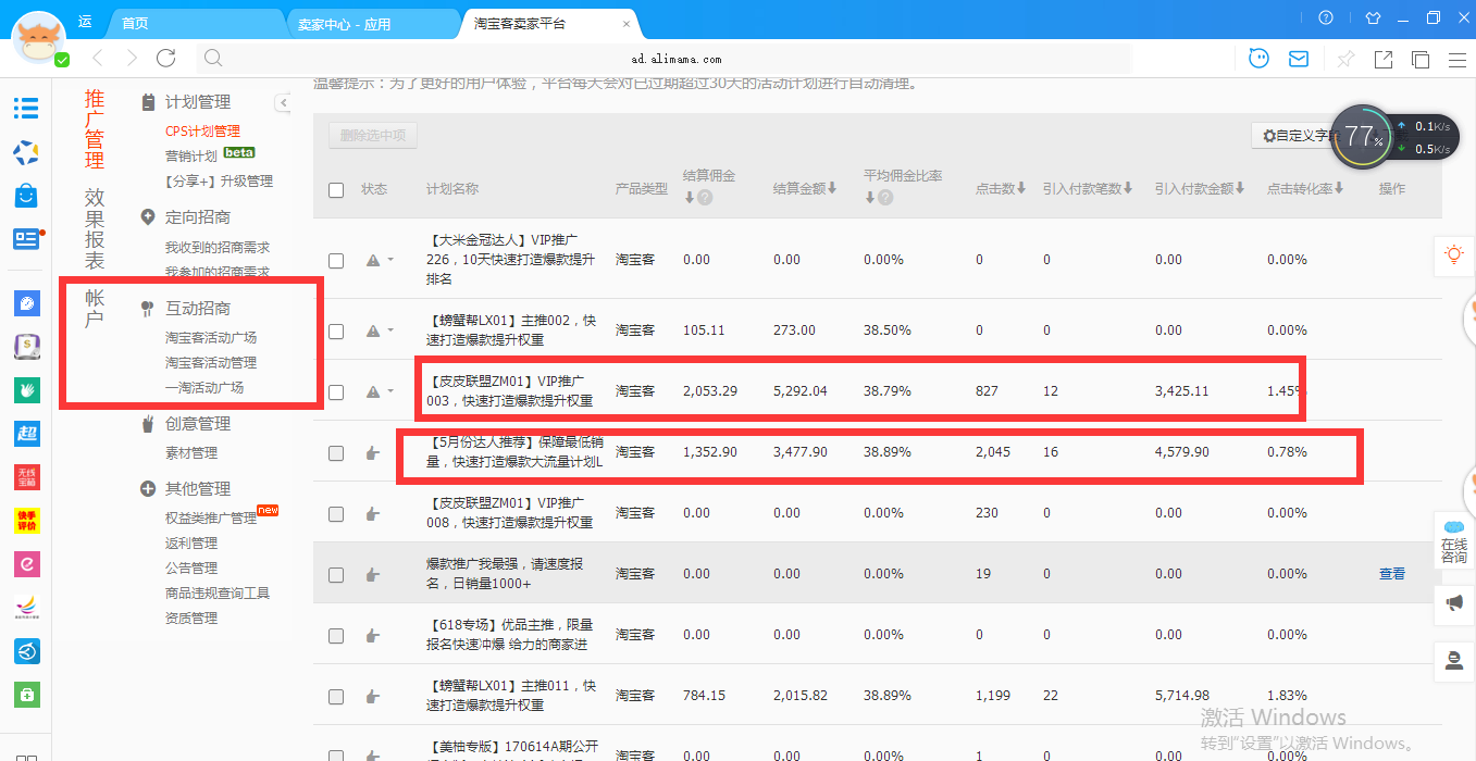 活动计划:可以通过互动招商,去报名参加活动,在每次活动完,总结单品销售额,可以找有效果的淘客,定期可以合作