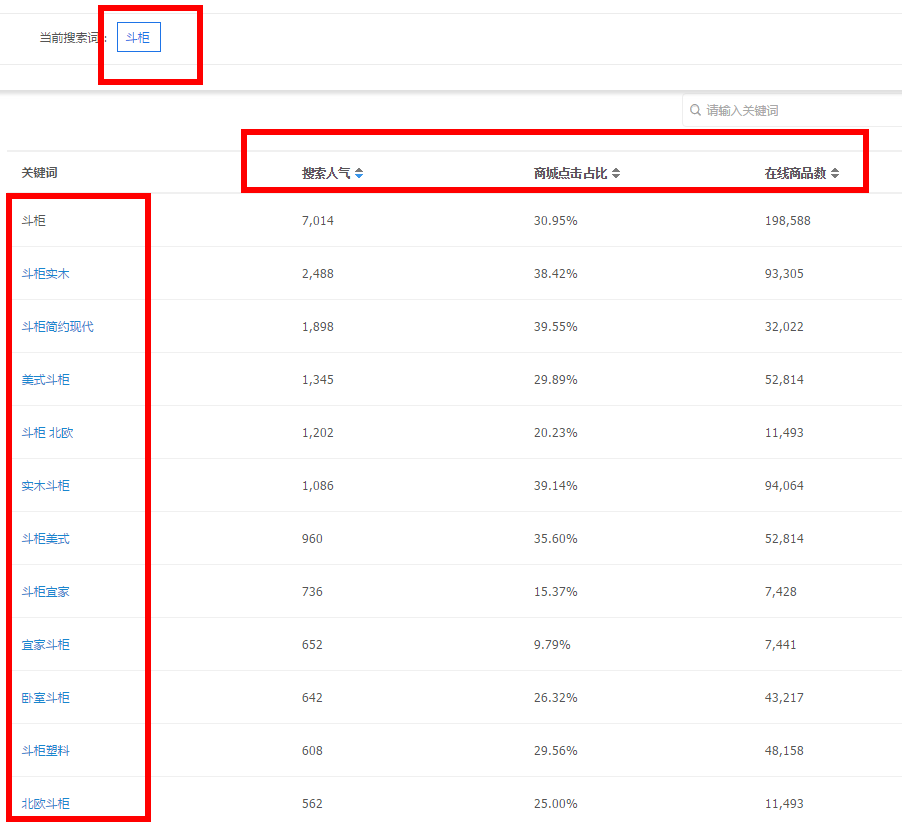 但是这个词延伸到斗柜实木整装经济型的时候已经无法搜索到宝贝了。这个时候不用怕不用慌,我们继续拿核心词去搜,再去寻找二级词。